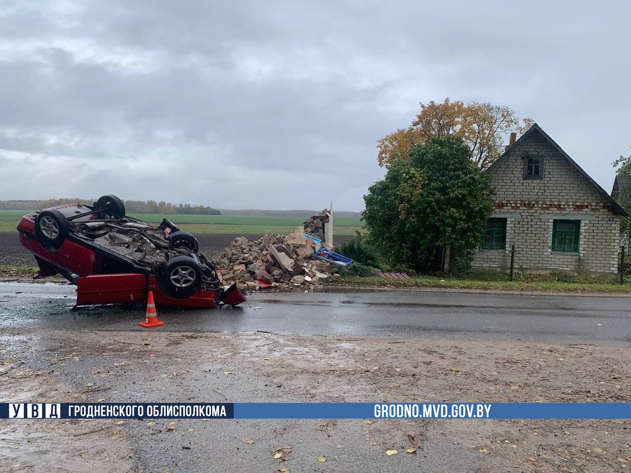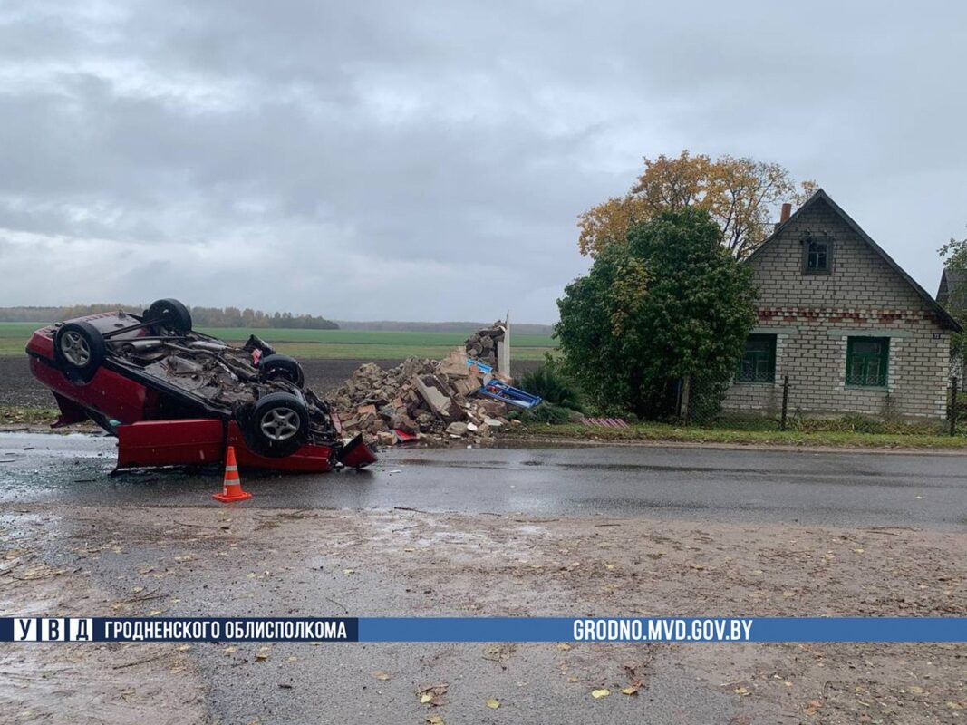 Автомобиль перевернулся. Каплица полностью разрушена. Водитель в аварии не пострадал, сообщает УВД Гродненского облисполкома.