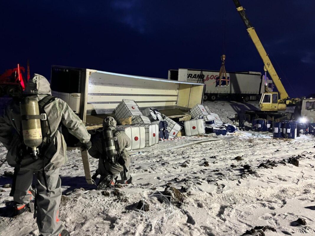 Грузовик из Беларуси, перевозивший 21 тонну опасного химического вещества, попал в ДТП в Казахстане.