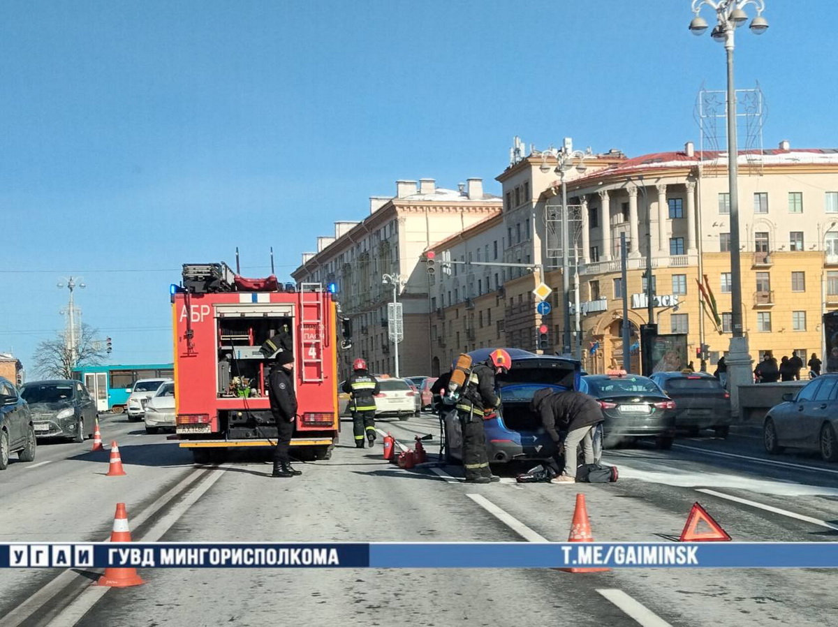 Автомобиль BMW внезапно загорелся в районе площади Победы в Минске, сообщает УГАИ ГУВД Мингорисполкома. Инцидент произошел сегодня днем вблизи дома №42 по проспекту Независимости. 33-летний водитель заметил идущий из под капота дым и покинул авто.