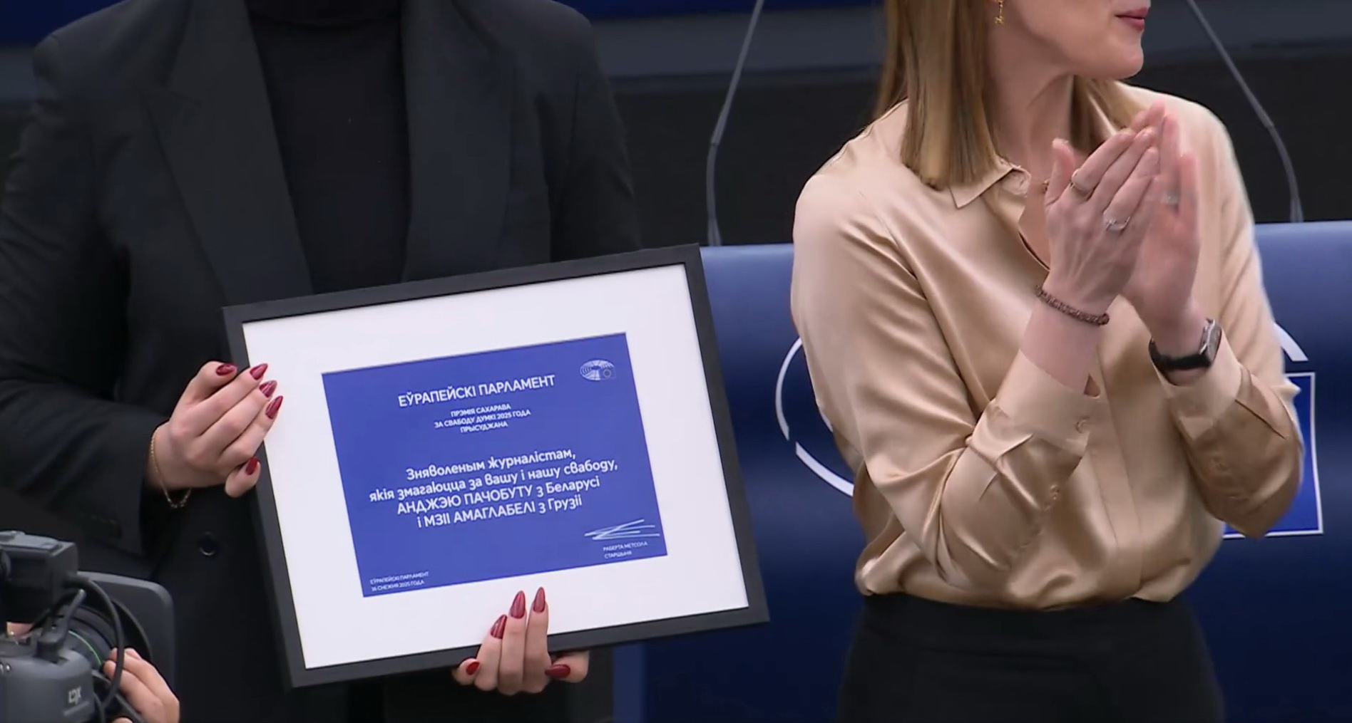 И сегодня мы приветствуем еще двух выдающихся людей в этом престижном списке. Журналисты Анджей Почобут из Беларуси и Мзия Амаглобели из Грузии. Андрей и Мзия не могут присутствовать сегодня, чтобы отметить их достижения и мужество. Они находятся в заключении. Просто за то, что выполняли свою работу, выступали против несправедливости и преследований», — сказала председатель Европарламента Роберта Метсола.