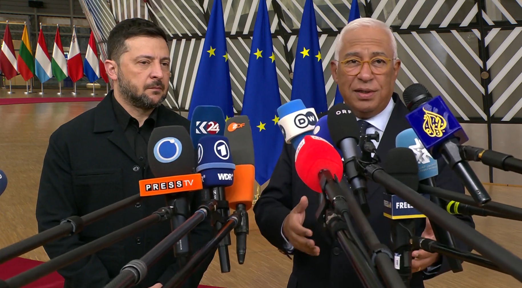Лидеры ЕС на сегодняншнем саммите примут политическое решение о дальнейшем финансировании Украины. Оно будет покрывать в том числе и ее военные нужды. Об этом во время совместного пресс-подхода с украинским президентом Владимиром Зеленским заявил глава Евросовета Антониу Кошта.
