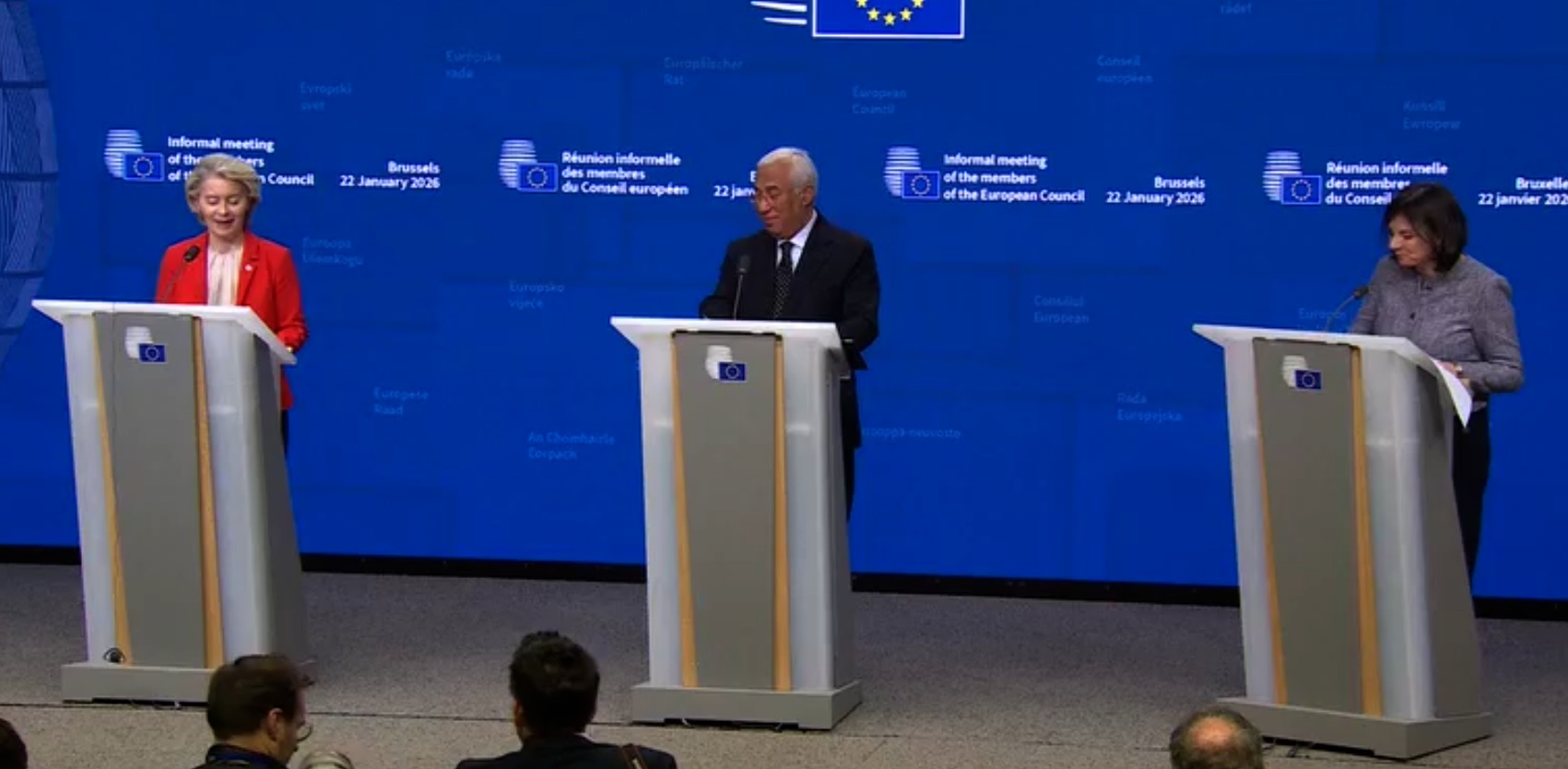 «Мы явно находимся в лучшем положении, чем 24 часа назад. И сегодня вечером мы извлекли уроки из нашей коллективной стратегии. Что мы сделали? Во-первых, мы проявили безоговорочную солидарность с Гренландией и Королевством Дания. Во-вторых, мы также твердо поддержали шесть государств-членов, которым угрожали введением пошлин. В-третьих, мы очень активно взаимодействовали с США на различных уровнях. Мы делали это твердо, но без эскалации. В-четвертых, мы были хорошо подготовлены к мерам противодействия в торговле и нетарифным инструментам на случай, если бы пошлины были введены. В итоге, мы следовали четырем ключевым принципам: твердость, открытость, готовность и единство, и это оказалось эффективным. В дальнейшем мы должны придерживаться того же подхода», — заявила глава Еврокомиссии.