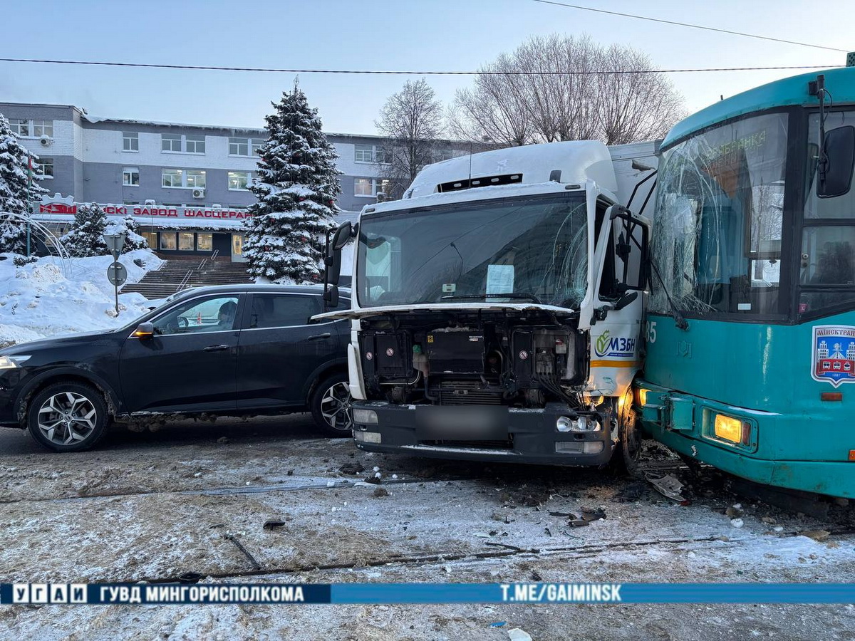 Грузовик столкнулся с трамваем и легковушкой на улице Долгобродской в Минске, сообщает УГАИ ГУВД Мингорисполкома.