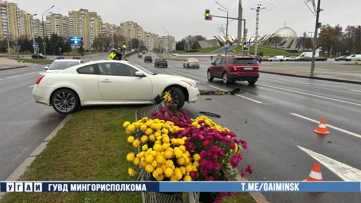 Автомобиль Infinity протаранил разделительное ограждение на проспекте Победителей в Минске, сообщает УГАИ ГУВД Мингорисполкома.