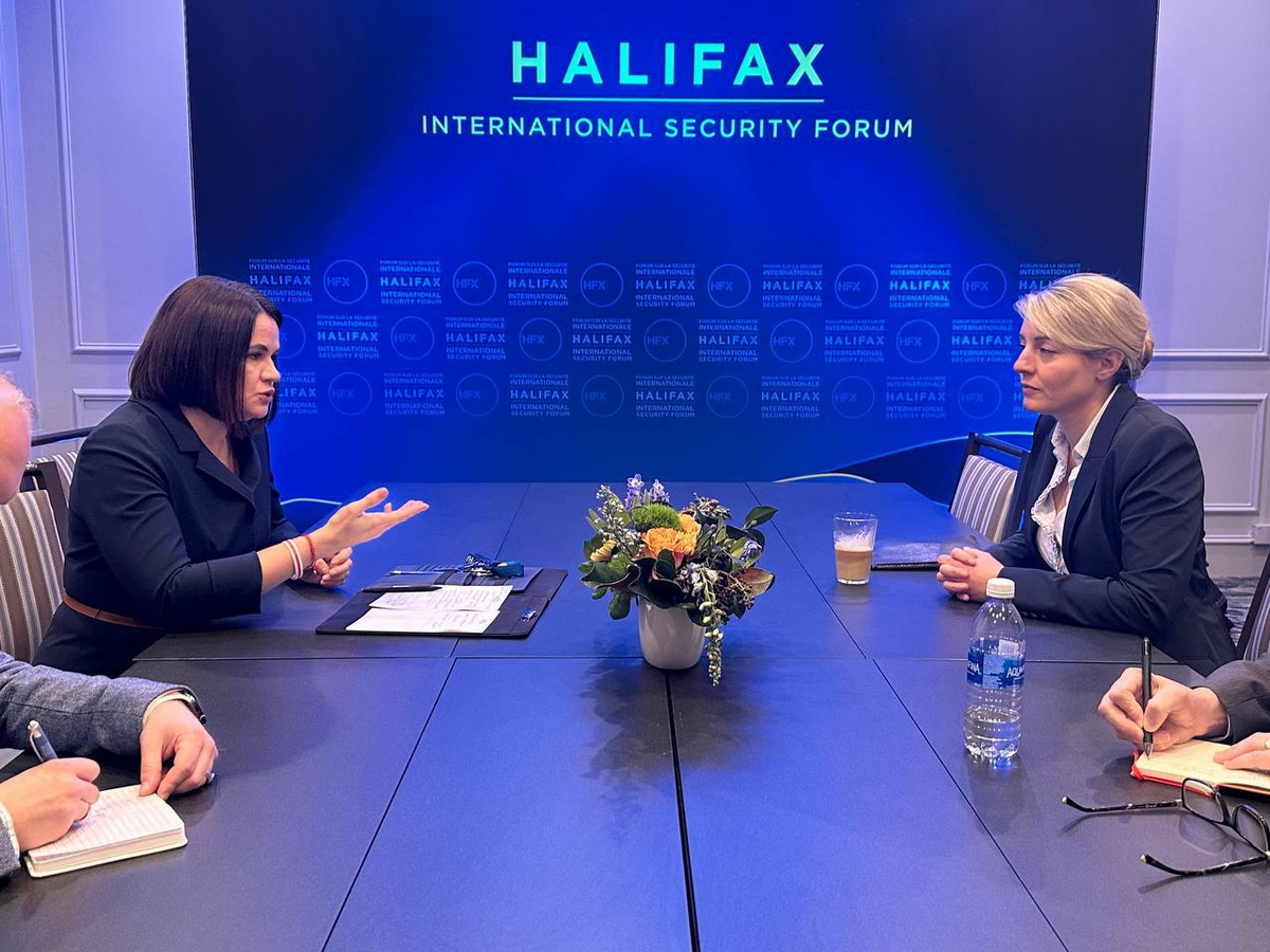 Светлана Тихановская совершает визит в Канаду. Политик начала его с участия в Международном форуме по безопасности в Галифаксе. Первой встречей стала беседа с министром иностранных дел Канады Мелани Жоли, сообщает «Парламенцкі канал».