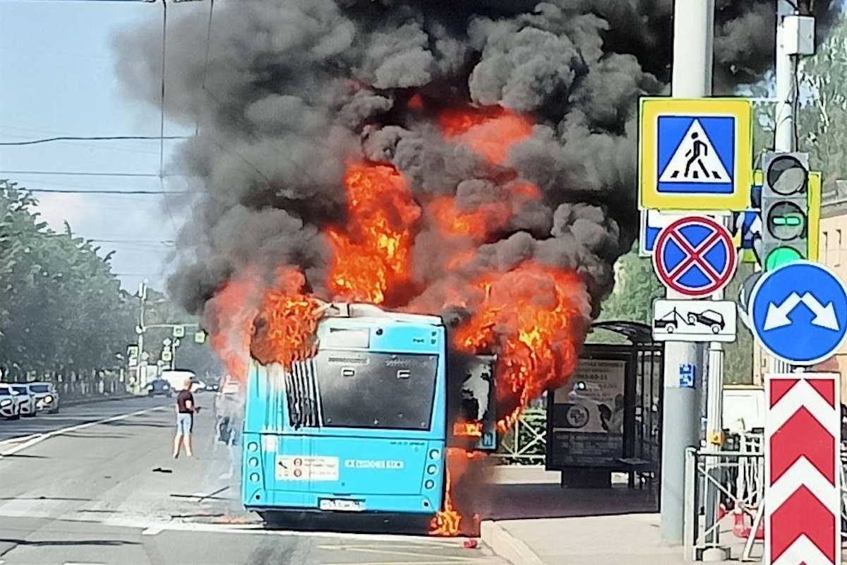 Лазурный автобус МАЗ загорелся утром 26 июня на Ланском шоссе у пересечения с Ланской и Студенческой улицами. Очевидцы публикуют фото и видео инцидента в социальных сетях.