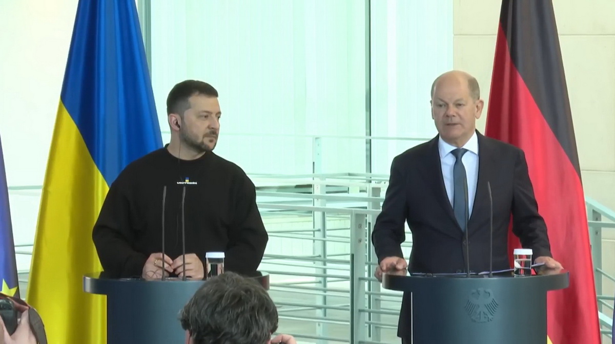 Канцлер ФРГ Олаф Шольц заявил, что Владимир Путин хочет сделать Украину и Беларусь частями России. Это прозвучало во время сегодняшней совместной пресс-конференции с Владимиром Зеленским, который находится в Германии с визитом.