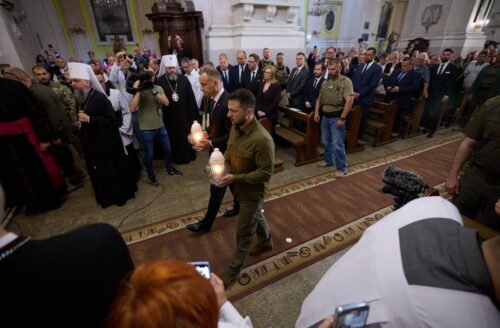 Анджей Дуда и Владимир Зеленский приехали в украинский Луцк почтить память жертв Волыни. Вместе они посетили
