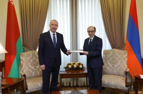Александр Конюк, посол Беларуси в Армении, вручил копии верительных грамот министру иностранных дел Армении