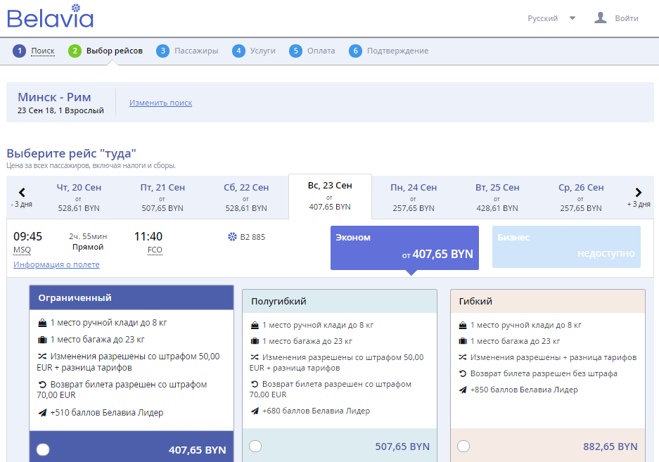 Экспериментальные тарифы «Белавиа» предложила в начале ноября. Стоимость тарифа снижается до