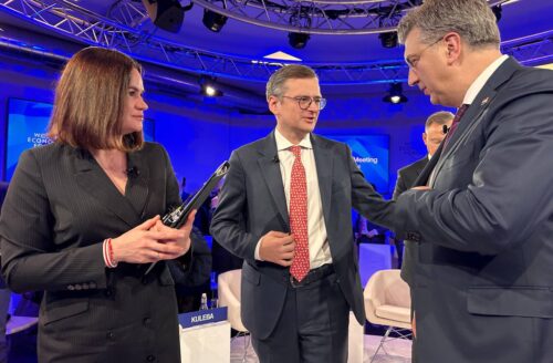 Светлана Тихановская встретилась с министром иностранных дел Украины Дмитрием Кулебой на полях Давосского форума.
