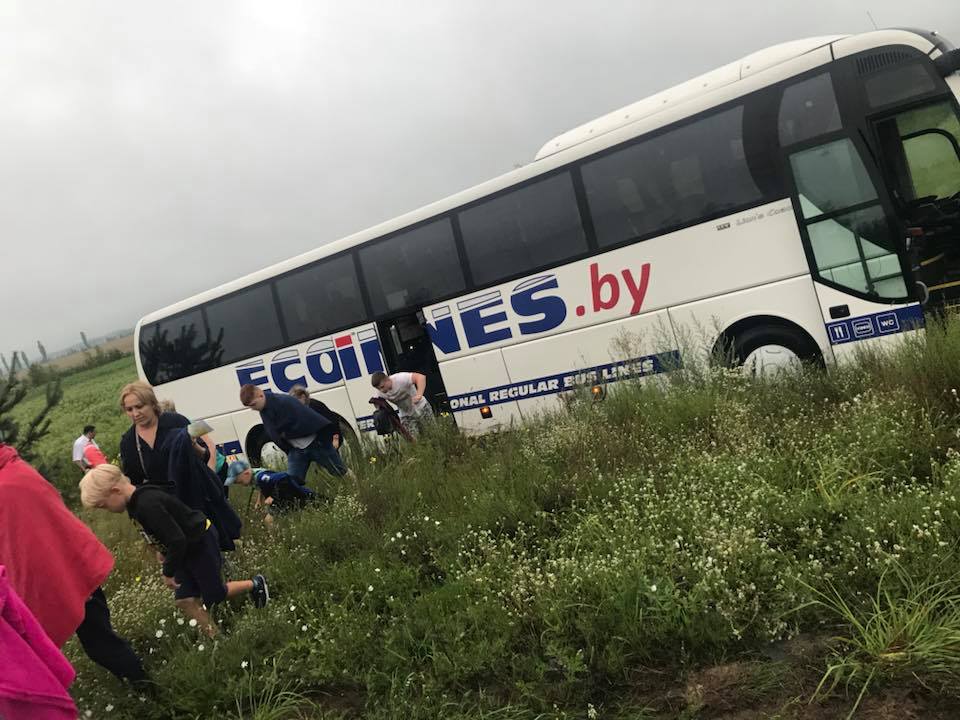 Рейсовый автобус Ecolines, на котором ехали белорусы, попал в ДТП в Украине. Он вылетел в кювет.