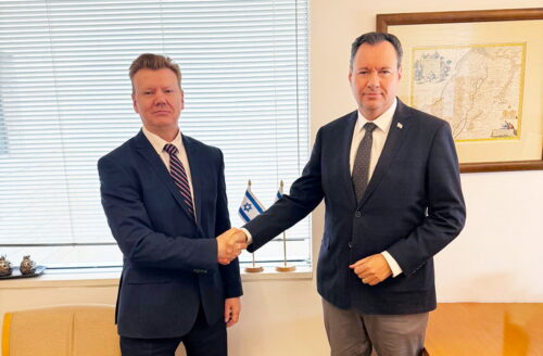 Посол Беларуси в Израиле Юрий Ярошевич и первый заместитель Генерального директора МИД Израиля Яков Ливне