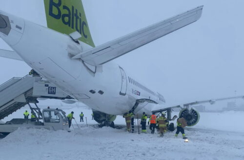 Сегодня в аэропорту Риги самолет AirBaltic Airbus A220-300 выкатился за пределы рулежной дорожки из-за