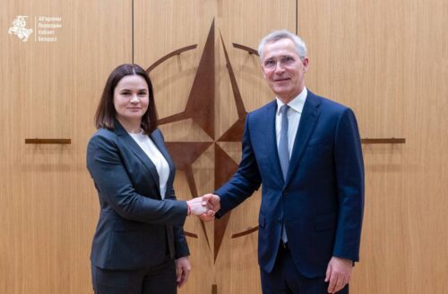 Светлана Тихановская впервые встретилась с генеральным секретарем НАТО Йенсом Столтенбергом.