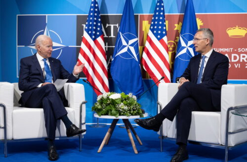 Президент США Джозеф Байден на встрече с генсеком НАТО Йенсом Столтенбергом перед саммитом в Мадриде