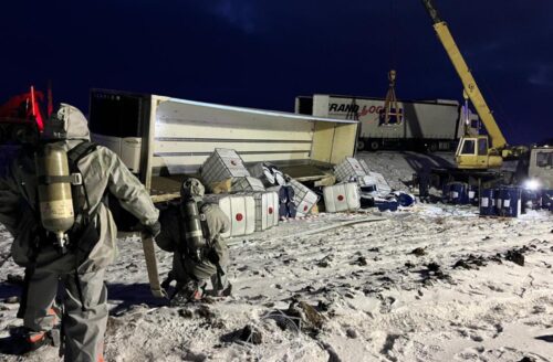 Грузовик из Беларуси, перевозивший 21 тонну опасного химического вещества, попал в ДТП в Казахстане.
