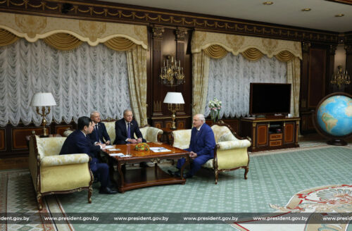 Александр Лукашенко сегодня встретился с послом Казахстана в Беларуси Тимуром Жаксылыковым.