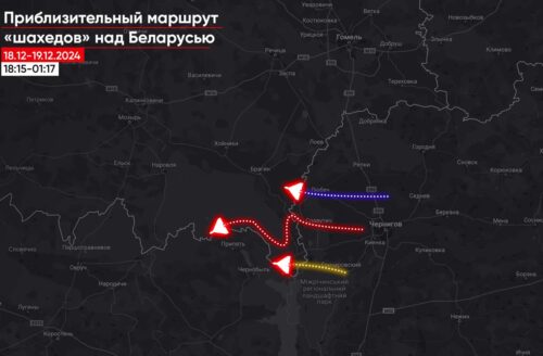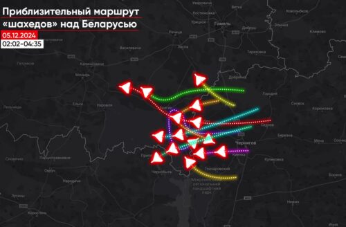 В ночь с 4 на 5 декабря не менее 17 российских дронов-камикадзе типа «шахед» зашли в Беларусь из Украины