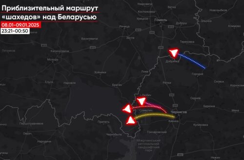 В ночь с 5 на 6 января минимум 8 российских дронов-камикадзе типа «шахед» залетели в Беларусь из Украины