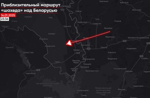 В ночь с 14 на 15 января в Беларусь залетел минимум один дрон типа «шахед». Заход зафиксирован в 23:36.