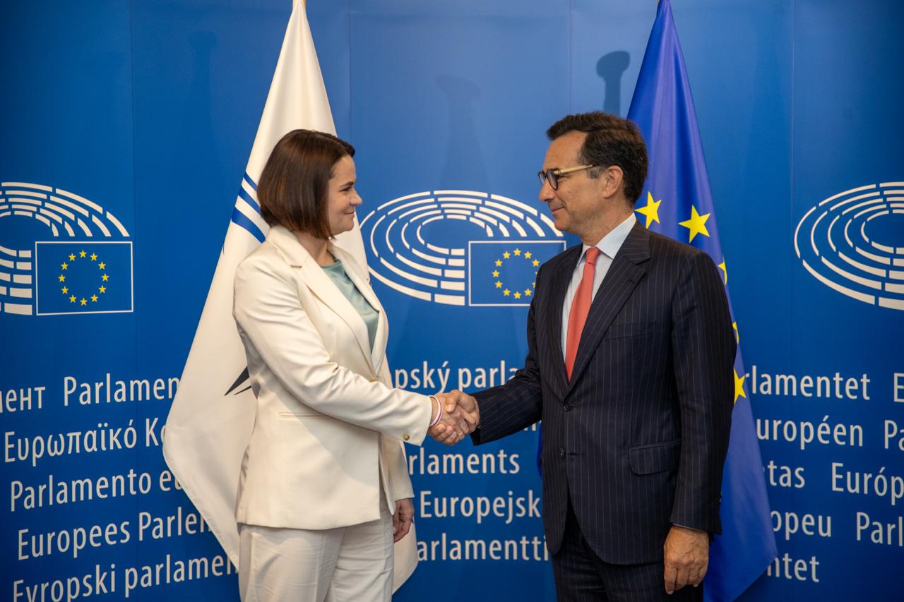 Светлана Тихановская встретилась с президентом Парламентской ассамблеи НАТО Маркосом Перестрелло в рамках визита в Брюссель 15 июля.