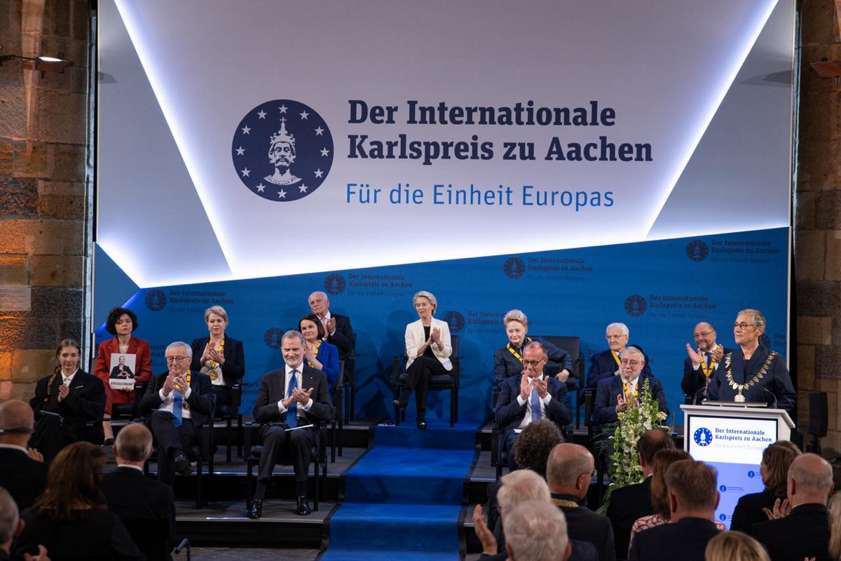Сегодня в Аахене торжественно вручили престижную Международную премию имени Карла Великого. В 75-й юбилей премии ее лауреатом стала Урсула фон дер Ляйен. Как подчеркнули организаторы, президента Европейской комиссии удостоили награды «за визионерское, смелое и решительное лидерство в период беспрецедентных трансформаций в Европе».
