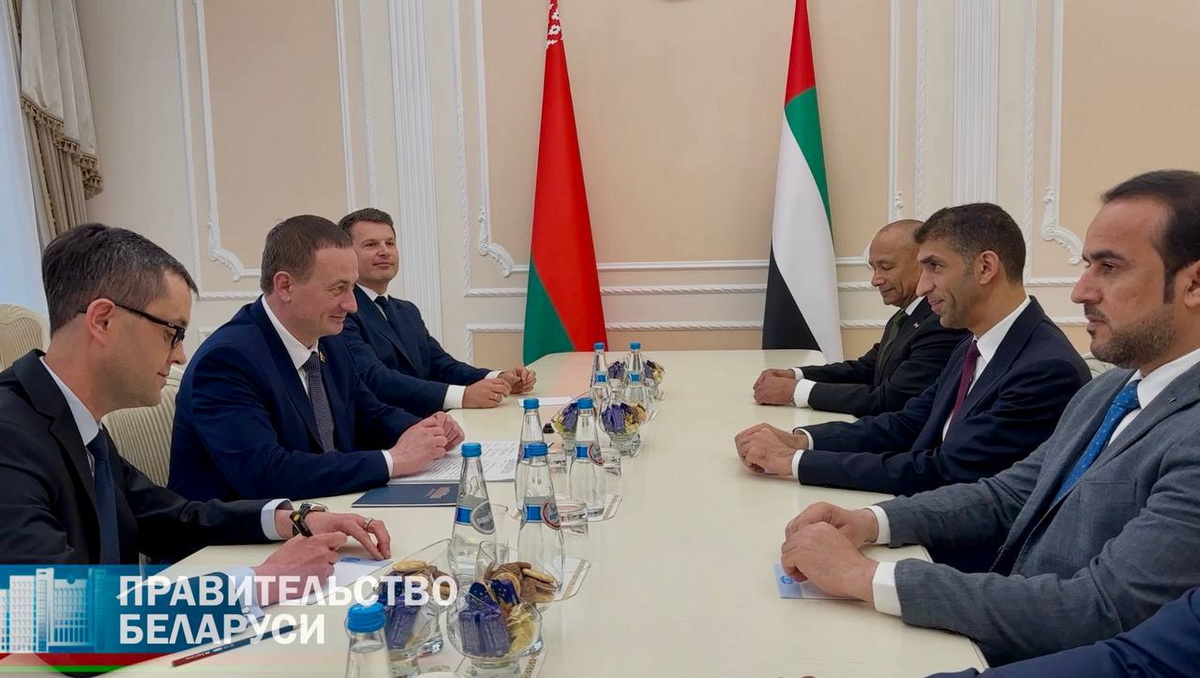 Премьер-министр Беларуси Александр Турчин проводит в Доме правительства встречу с государственным министром по делам внешней торговли ОАЭ Тани аль-Зеюди. Обсуждаются двустороннее сотрудничество, инвестиции и упрощение торговли между ЕАЭС и ОАЭ. В ходе встречи беларусский премьер назвал строительство комплекса «Северный берег» одним из знаковых проектов, реализуемых иностранными инвесторами в Беларуси.