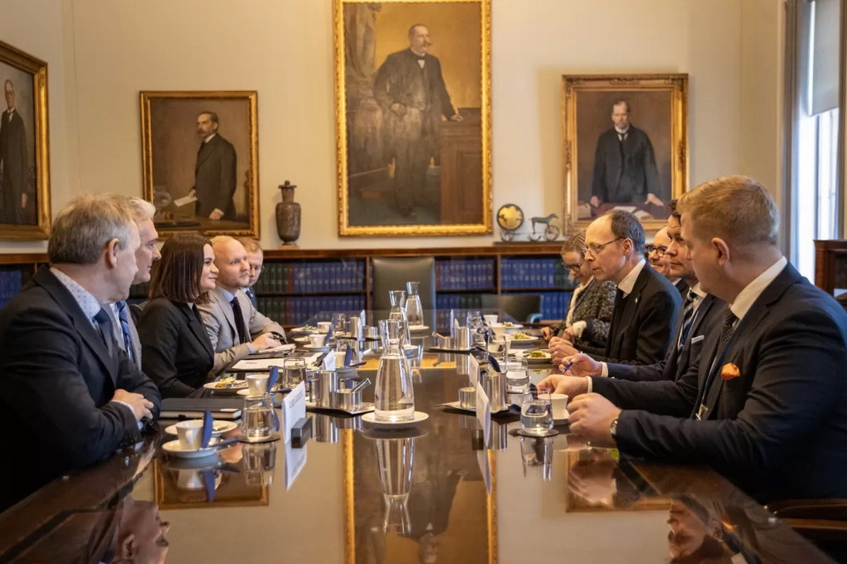 Со спикером парламента Юсси Халла-Ахо Светлана Тихановская вместе с советником по межпарламентскому сотрудничеству Анатолием Лебедько и представителем в Латвии и Эстонии Виталием Молчановым обсудили создание группы «За демократическую Беларусь» в парламенте Финляндии и присоединение к работе международной коалиции групп друзей Беларуси.